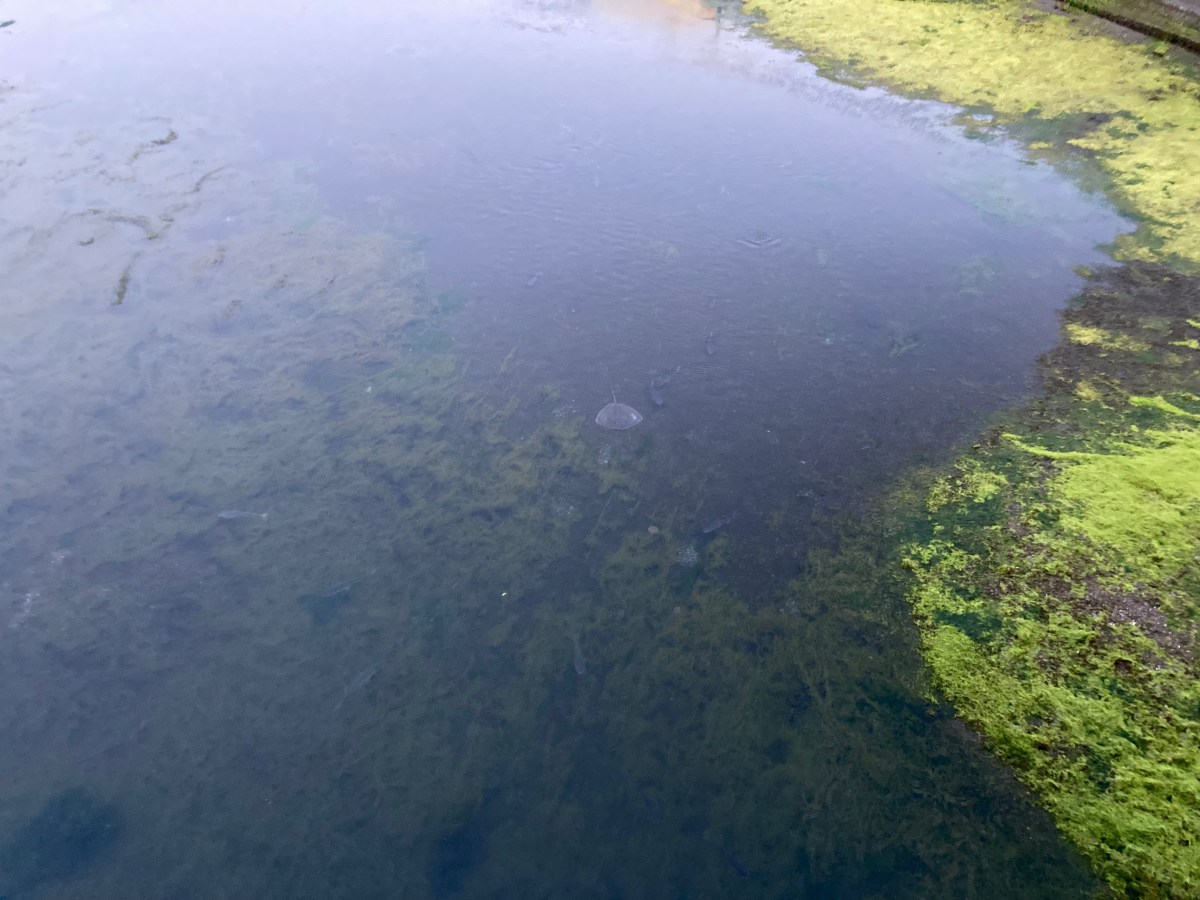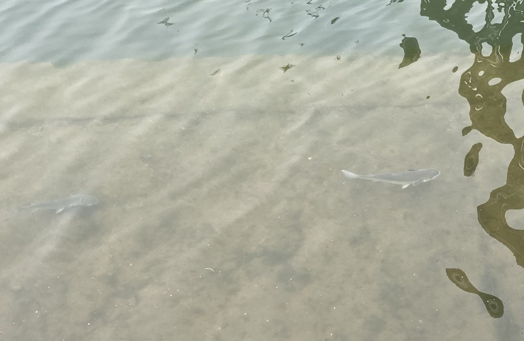 春が近づき、水温があがって、河口付近には魚やエイがみられるようになっています。