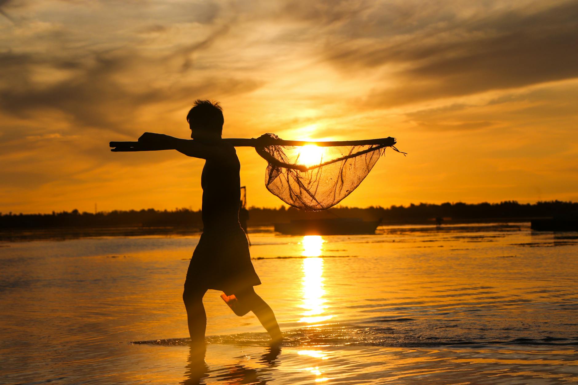 それから、私は携帯電話で妻に「大きな網で魚を捕まえたい」と言いました。