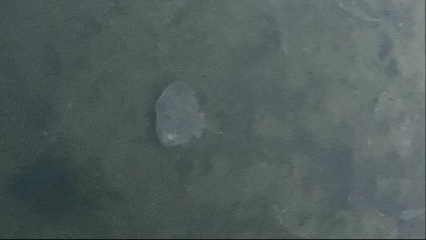 エイを見つけました。河口の汽水域です。周りにはボラがいます。エイは大きく、体長は約1メートルです。これらの魚と比べると、私が見つけたエイの大きさがわかると思います。
