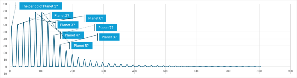 In the spectrum, we see some periods that can be counted on fingers which evokes somehow number of planets in a soler system.